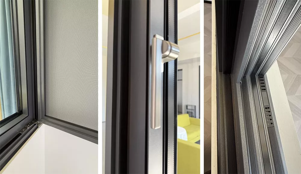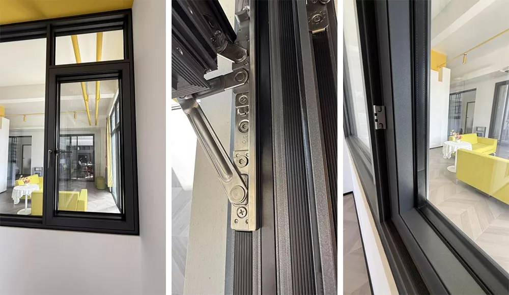 As finas janelas de batente de alumínio, com moldura ultraestreita e enorme painel de vidro fixo, combinadas com a alça superior e design de ventilador oculto, garantem máxima ventilação e visão quando abertas, criando um espaço espaçoso e bem ventilado.